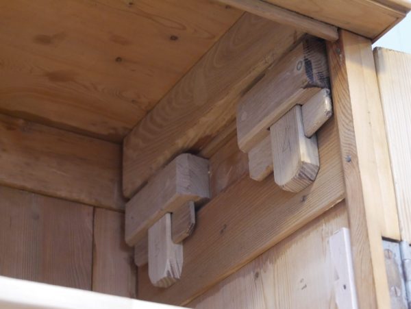 ACHTUNG! Der Schrank ist komplett zerlegbar und wird zeittypisch mittels Holzkeilen zusammengebaut
